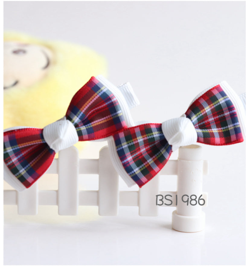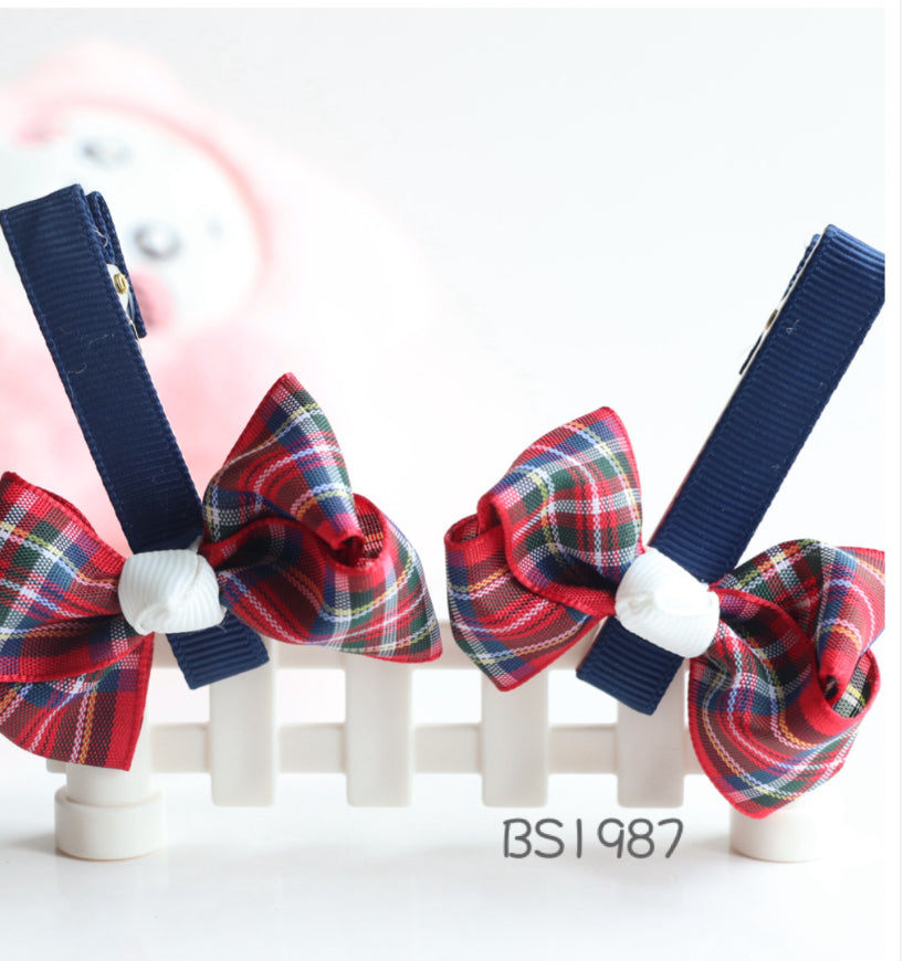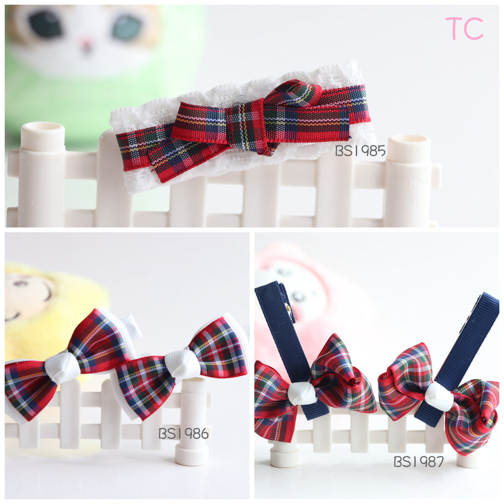 聖保祿學校髮飾,聖保祿學校髮夾, 聖保祿學校蝴蝶結,聖保祿學校橡筋圈深藍和格仔蝴蝶結, 瑪利曼小學冬季頭飾
