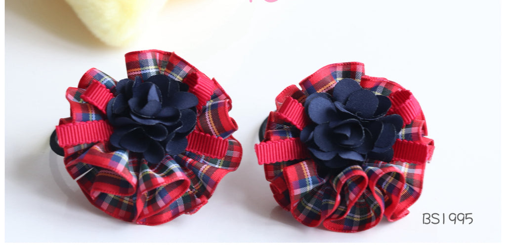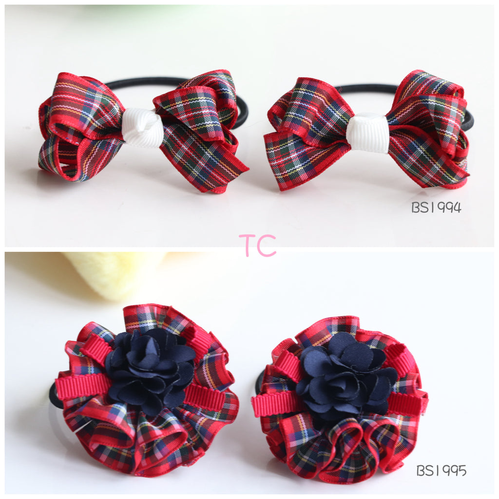 聖保祿學校髮飾,聖保祿學校蝴蝶結,聖保祿學校橡筋圈深藍和格仔蝴蝶結, 瑪利曼小學冬季頭飾