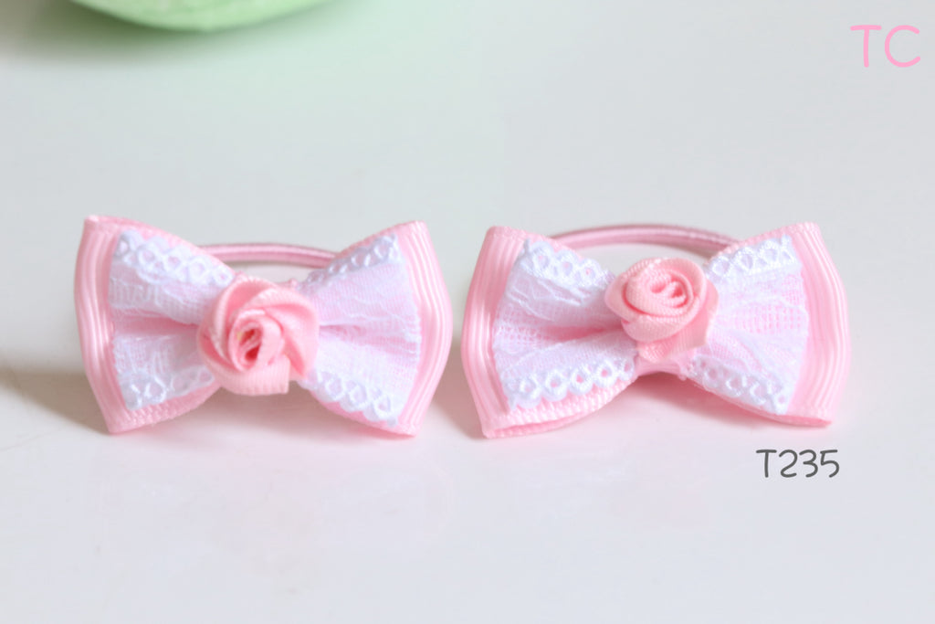 Elegant Lace Hair Ties with Rose, pink/ purple (T235-T236)